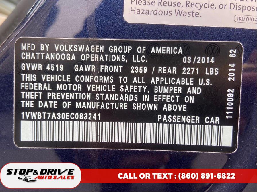 Pictures of used 2014 Volkswagen Passat 4dr Sdn 1.8T Auto SE w/Sunroof PZEV in East Windsor, CT