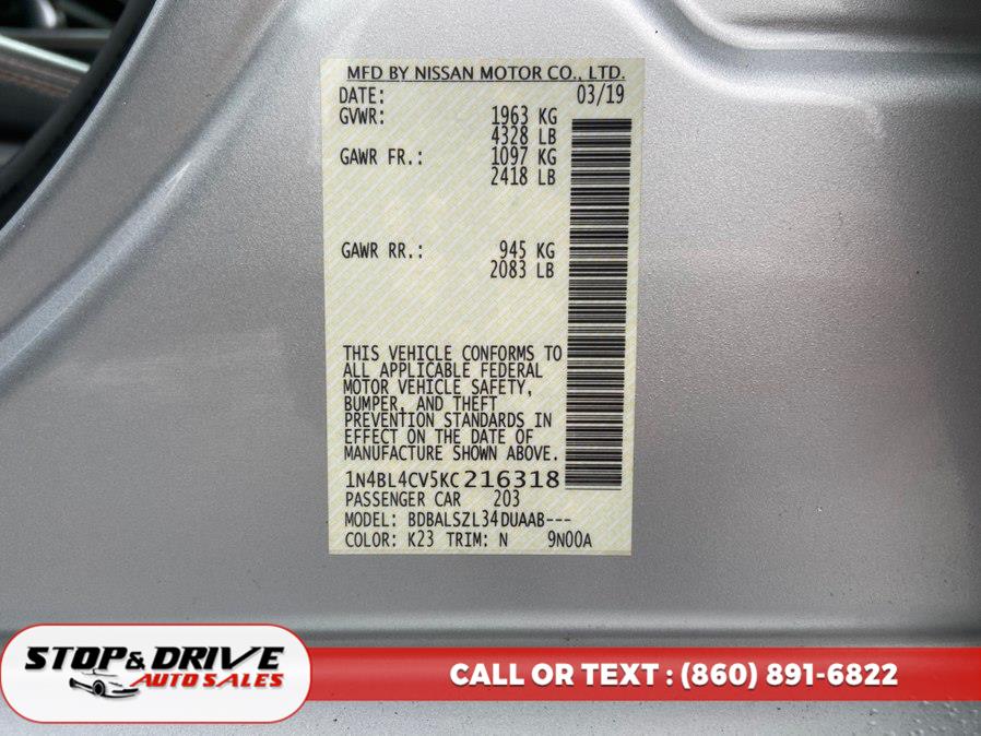 2019 Nissan Altima 2.5 SR Sedan, available for sale in East Windsor, Connecticut | Stop & Drive Auto Sales. East Windsor, Connecticut
